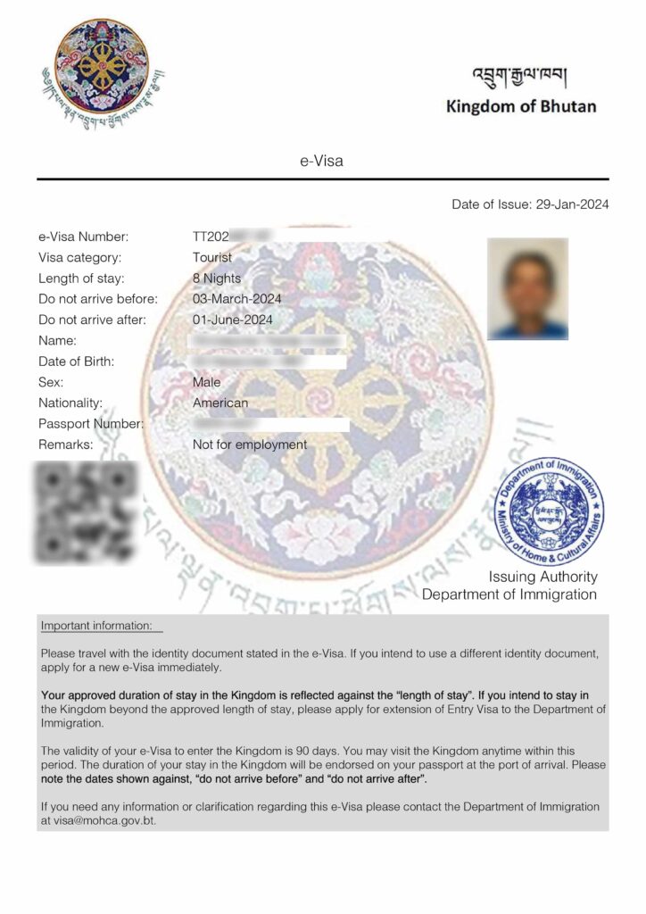 - On arrival at the Paro International Airport, the Actual visa is stamped on your passport.